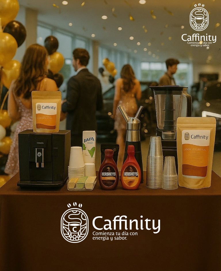 Lleva la experiencia Caffinity a tus eventos sociales o corporativos. Nuestro servicio de barra incluye baristas, equipo de alta gama y un menú personalizado con bebidas de café de especialidad calientes y frías diseñado para elevar cada momento.
